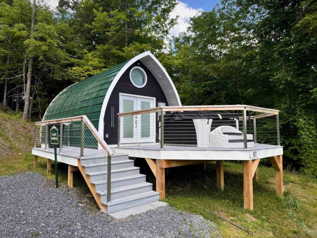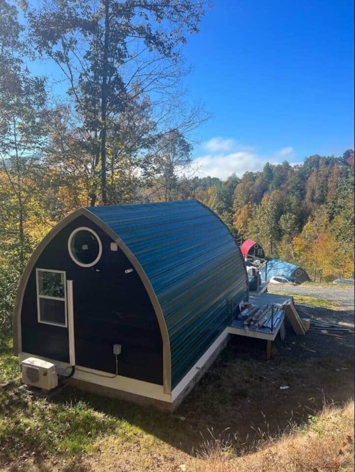 Candee Mountain Retreat in Bakersville, NC is a romantic Blue Ridge getaway. Our cozy arched cabins feature a queen bed, full bath, kitchenette, sofa, smart TV, and coffee maker. Outside, relax in your private hot tub, enjoy a campfire, and take in mountain views. The perfect blend of comfort, charm, and seclusion for couples.
