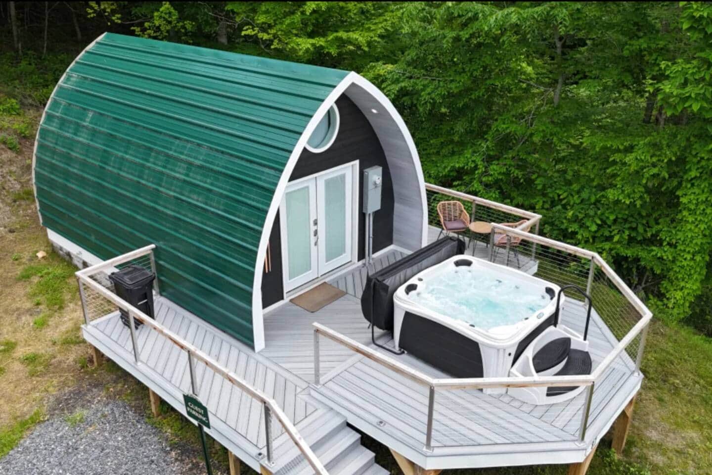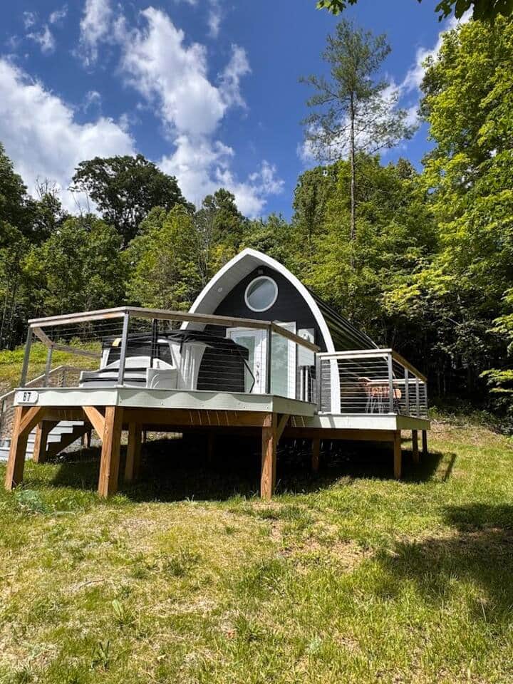 Ubicada en el punto más alto de Candee Mountain Retreat en Bakersville, NC, la Cabaña Verde ofrece vistas panorámicas y total privacidad. Esta moderna cabaña arqueada cuenta con cama queen con ropa de cama de lujo, acogedora sala de estar y baño privado con ducha de vidrio. Disfruta de la estación de café y té, jacuzzi privado, fogata al aire libre, además de acceso a lavadora/secadora, secador de pelo y artículos de tocador. Turefugio privado en la montaña. Bienvenido a Candee Mountain Retreat, un refugio privado en el corazón de las Montañas Blue Ridge, a las afueras de Bakersville, Carolina del Norte. Diseñado para la relajación y la conexión con la naturaleza, nuestro retiro combina comodidad, aislamiento y aventura. Somos dueños de ambos lados de la tranquila carretera de montaña, lo que garantiza total privacidad durante tu estadía. Varios miradores en la propiedad ofrecen vistas espectaculares, y hemos creado senderos privados para que explores crestas y valles a tu propio ritmo. Escondido entre los árboles, también descubrirás un estanque con peces dorados, ideal para sentarse y relajarse junto al agua. Al caer la noche, disfrutarás de uno de los mejores cielos estrellados de las Blue Ridge: gracias a la mínima contaminación lumínica, podrás relajarte en tu jacuzzi privado bajo un manto de estrellas. Ya sea caminando por los senderos, descansando junto al estanque o compartiendo la calidez de tu fogata privada, Candee Mountain Retreat te ofrece una escapada inolvidable a la montaña. Lo más destacado del retiro: • Propiedad privada y aislada en la montaña (poseemos ambos lados del camino) • Varios miradores accesibles mediante senderos en la propiedad • Estanque con peces dorados para relajarse junto al agua • Cielos despejados y sin contaminación lumínica para observar las estrellas • Jacuzzi privado y fogata en cada cabaña • Cercanía a cascadas, senderos y encantadores pueblos de montaña Candee Mountain Retreat es más que un lugar donde hospedarse: es un espacio para desconectarte del ritmo diario, reconectar contigo mismo y experimentar la belleza simple de las montañas.